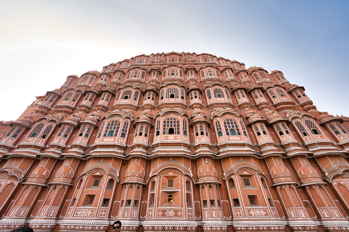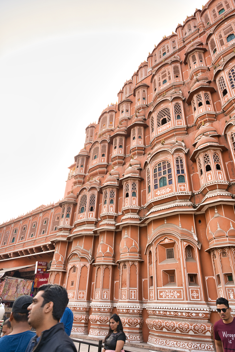 上の写真が通りから見えるハワー・マハルです。ジャイプルという街は、別名『ピンク・シティー』と呼ばれていて、薄いピンク色をした外壁の建築で都市が作られています。もちろん、このハワー・マハルもピンク色をした外壁で仕上げられています。1799年にジャイプルの王によって造られたのですが、この王の名は「マハラジャ」と言う日本人には聞き馴染みのある王様です。途端に親近感を感じてしまう不思議。